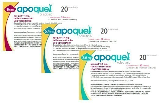Apoquel® Tabletas Masticables no debe ser administrado en animales que presenten hipersensibilidad a cualquiera de sus componentes.