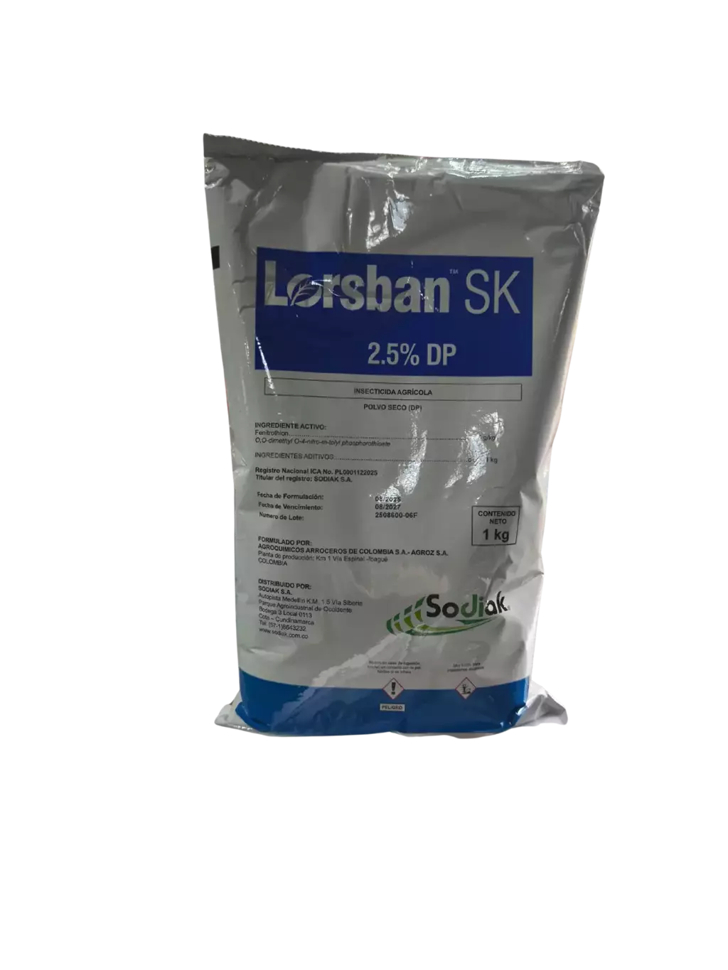 LORSBAN SK 2.5 % DP es un insecticida perteneciente al grupo de los organofosforados recomendado para controlar plagas masticadoras, chupadoras y perforadoras en diferentes cultivos. Es un producto no sistémico, con acción de contacto y estomacal. Tiene efecto sobre la transmisión nerviosa, mediante la inhibición irreversible de la acetilcolinesterasa. El efecto es inmediato ya que tiene un efecto de volteo rápido. Posee buena persistencia, efecto de choque y acción en profundidad. Se caracteriza por su rápido efecto inicial, notable acción penetrante y persistencia de 2-3 semanas.