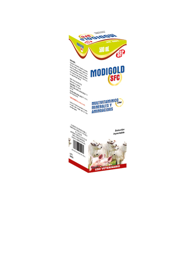 Modigold Sfc es un estimulante del metabolismo que contiene vitaminas, minerales y aminoácidos, nutrientes que el organismo requiere en pequeñas cantidades, habiéndose demostrado que la deficiencia de algunos de ellos puede afectar el normal desarrollo de los animales, por lo que una apropiada suplementación en el programa de alimentación de los animales es esencial para sostener niveles óptimos de producción, fertilidad y salud en general.
